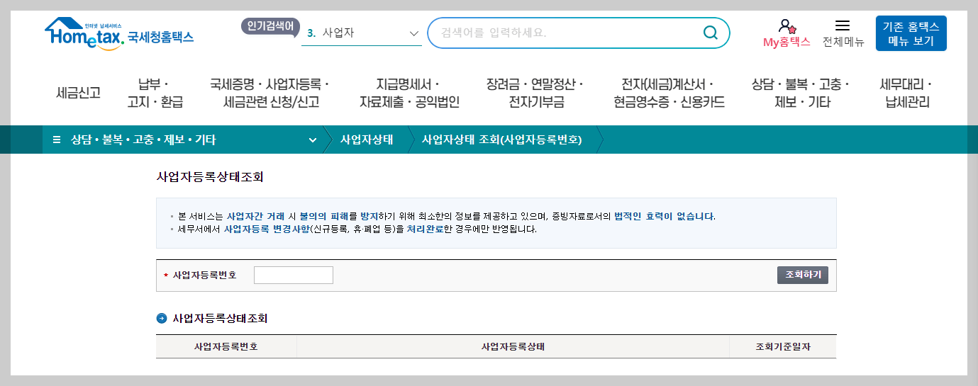κ΄μΈμ² μ¬μ΄νΈμΈ μ λν¨μ€μμλ μ¬μ μλ±λ‘λ²νΈ μ‘°νκ° κ°λ₯ν©λλ€. λ¨, μ λν¨μ€μμλ μμΆμ μ€μ μ΄ μλ νμ¬λ§ κ²μμ΄ λλ μ°Έκ³ νμκΈ° λ°λλλ€.